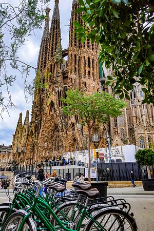 Bikes waiting their riders outside of La Sagrada Familia